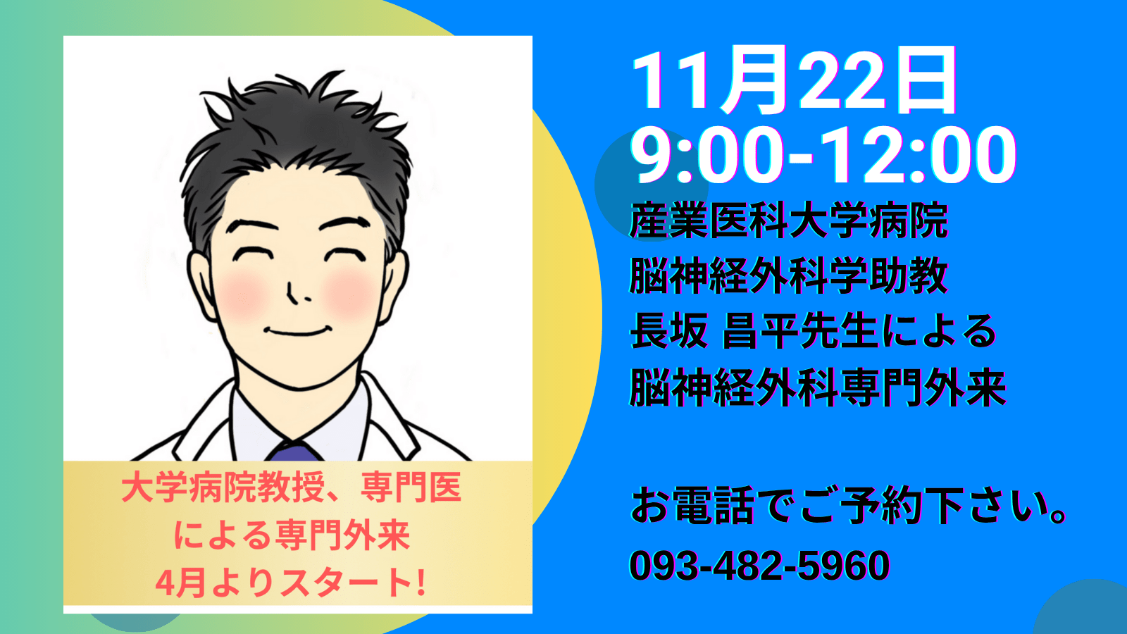 11月22日土曜日 産業医科大学病院脳神経外科専門医による専門外来(2診体制)