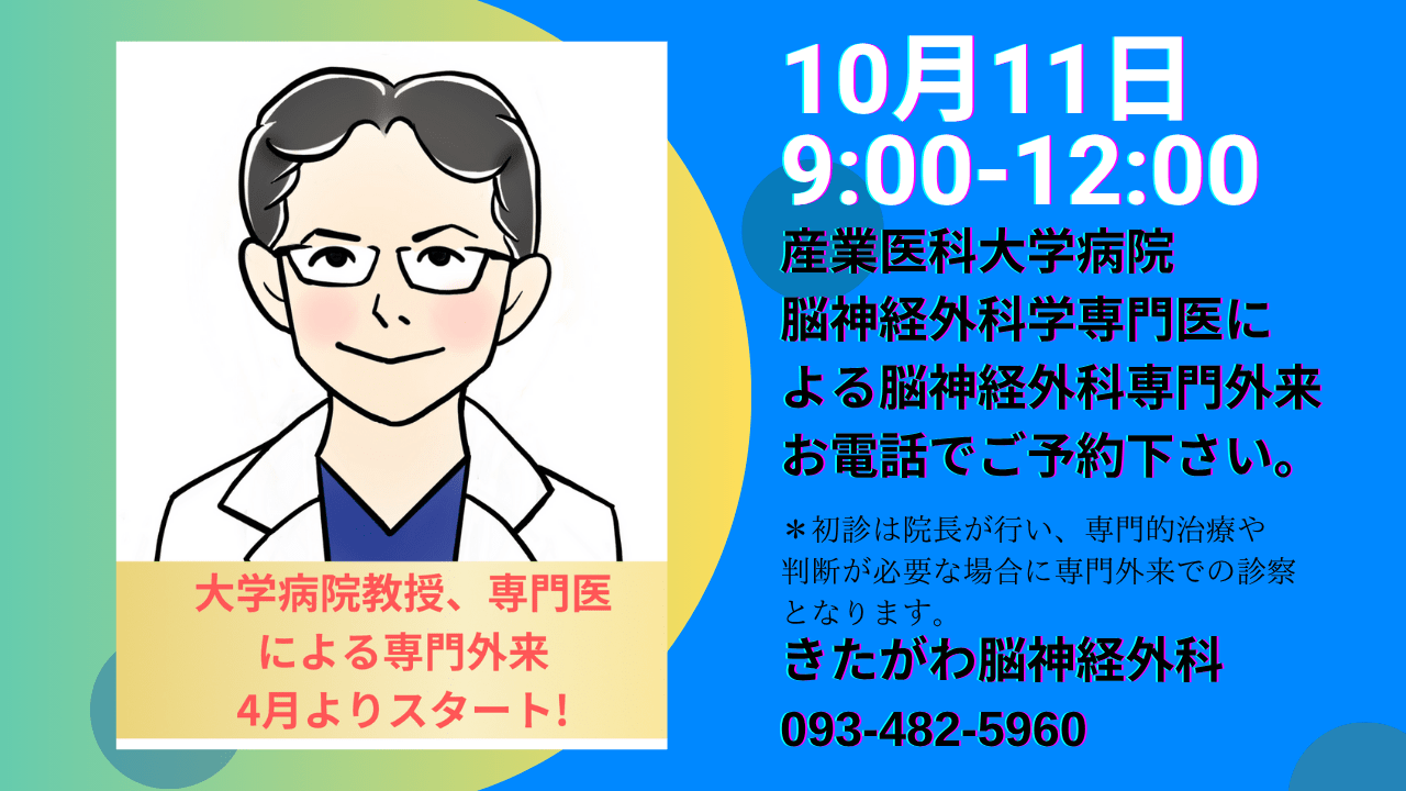 10月11日土曜日 産業医科大学病院脳神経外科専門医による専門外来(2診体制)