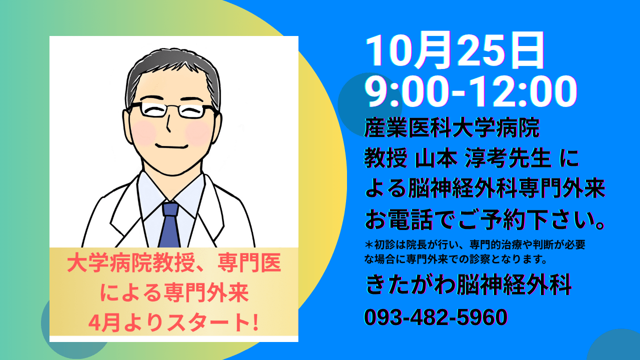 10月25日土曜日 産業医科大学病院脳神経外科専門医による専門外来(2診体制)