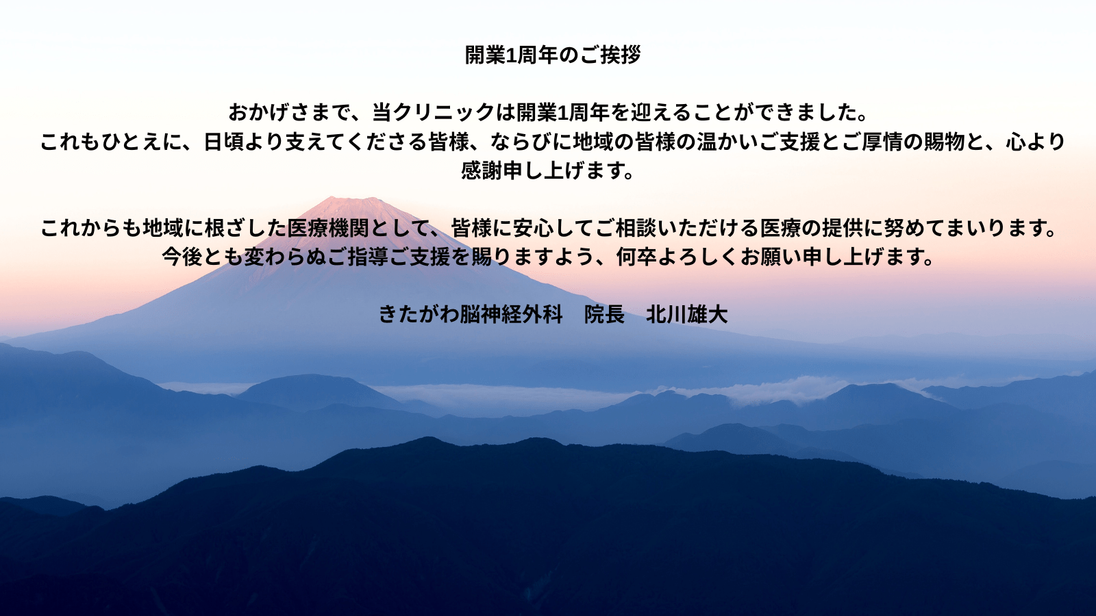 おかげさまで、当クリニックは開業1周年を迎えることができました。